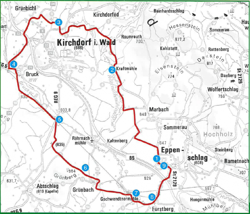 Die 12,5 km lange Wanderstrecke umfasst 9 Stationen...