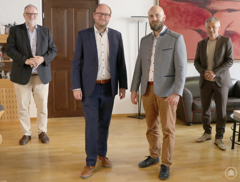 Oberbürgermeister Jürgen Dupper (links) und Wirtschaftsreferent Werner Lang (rechts) freuen sich mit den neuen Partnern Henning (2. von links) und Thilo Könicke auf die nächste Auflage der Dreiländermesse „Passauer Frühling“ 2022.