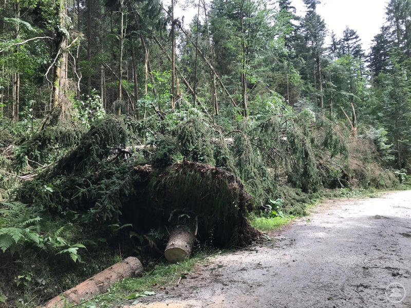 Der Gewittersturm am vergangenen Mittwoch hat im Bereich Scheuereck und Bayerisch Eisenstein viele Bäume zu Fall gebracht.