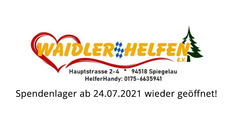 Waidler-helfen e.V. öffnen das Spendenlager in der Hauptstrasse 2-4 – 95418 Spiegelau nach der langen Zwangspause wieder wie folgt: am Samstag 24.07.2021 von 14:00-17:00 Uhr mit Großem Flohmarktverkauf und dann im 14-Tägigem Rhythmus Samstag 14:00-17:00 Uhr. Die gesamten Einnahmen kommen unseren Hilfsprojekten zu Gute!
