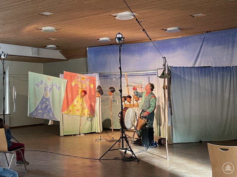 Am Freitag, den 09. Juli 2021, gastierte das Theater Maskara in Schönberg das witterungsbedingt im KuK Schönberg. Das Stück „Der Trommler – ein Märchen der Gebrüder Grimm“, das mit etwa 70 Zuschauern gut besucht war, handelt von einem jungen Trommler, der am Seeufer drei Stück feines Leinen findet, ohne zu ahnen, dass es sich um das Flughemd einer verwunschenen Königstochter handelt. Diese fordert in der Nacht ihr Hemdchen zurück. Als der Trommler erfährt, dass sich die Königstochter in der Gewalt einer Hexe befindet, verspricht er ihr zu helfen. Er muss drei nahezu unlösbare Aufgaben bewältigen. Aber bis die beiden am Ende wirklich zusammenfinden, müssen sie noch eine große Prüfung bestehen. Es zeigt sich, dass es im Leben nichts Wichtigeres gibt, als der Stimme des Herzens zu folgen. Schauspieler und Mulitalent Frieder Kahlert schlüpfte, während dem Märchen immer wieder unter verschiedene Masken, die alle von ihm eigens angefertigt worden waren und die Zuschauer aller Altersgruppen im Laufe des Schauspiels vergessen ließen, dass nur eine Person auf der Bühne stand.