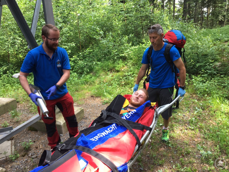 Da Matthias Stockbauer der einzige verfügbare Luftretter war, übergab er das Einsatzkommando an Einsatzleiter Anton Schmeller und fuhr zum Sportplatz nach Riedlhütte, wo er vom Rettungshubschrauber an Bord genommen wurde. Zusammen mit der Bordnotärztin wurde Stockbauer im Doppelwinch zur Unfallstelle abgelassen.