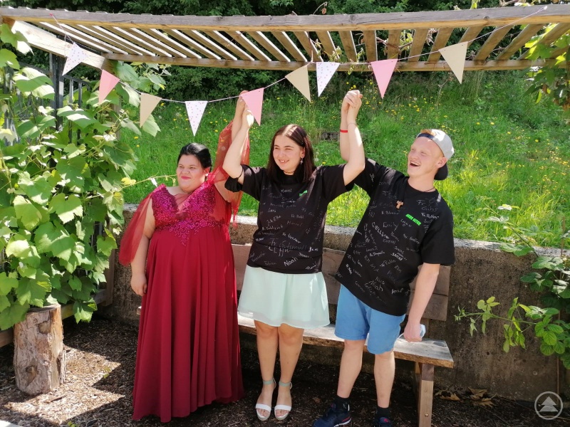 Wieder neigt sich ein außergewöhnliches Schuljahr dem Ende zu: Den Zeiten geschuldet wieder ein Abschied mit gebotener physischen Distanz. „Dafür wieder mit extrem emotionaler Nähe!“, so Julia Lorenz, die stellv. Schulleiterin am Caritaszentrum für geistige Entwicklung in Freyung. „Auch für die gesamte Schulfamilie ist der jährliche Abschied unserer Berufsschulklasse sehr prägend: Haben wir doch die jungen Menschen im Erwachsenwerden viele Jahre lang begleiten dürfen. Ihnen versucht – ganz an ihren Möglichkeiten orientiert – eine Perspektive für ein eigenbestimmtes Leben an die Hand zu geben.“ In diesem Jahr starten Fabian Oster, Sophie Wörmann, Tamara Mayerhofer, Jonas Penzenstadler und Hannah Rauprich ihren Weg in die Arbeitswelt. An der Feier konnten Hannah und Jonas leider nicht persönlich teilnehmen.