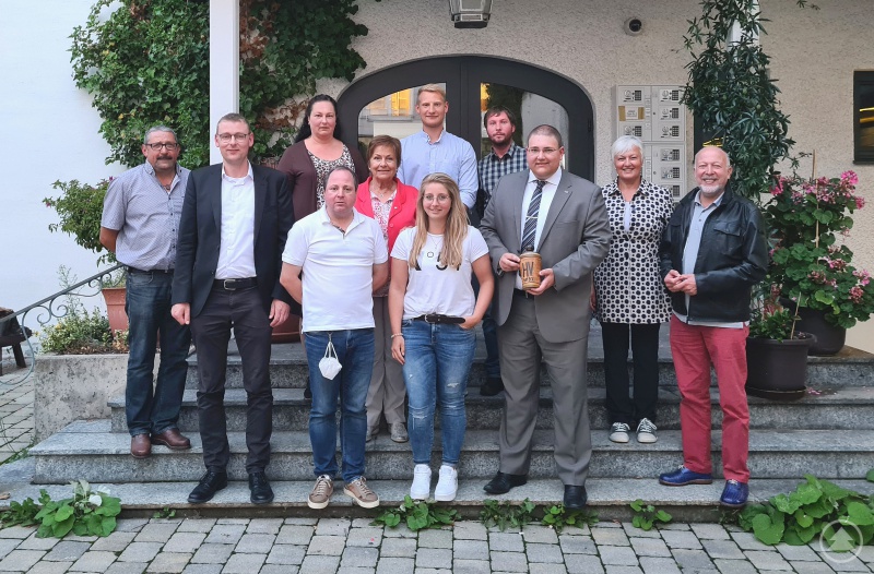 Vorstellung der Neumitglieder im Rahmen der Generalversammlung: 1. Vorsitzender Christoph Weishäupl (rechts) und 3. Bürgermeister Christoph Endl (links) mit (vorne; v. links n. rechts) Klaus Kerschbaum, Anita Vormann, Sabrina Rück, Johanna König, (hinten; v. links n. rechts) Martin Kerschbaum, Max Fürst und Thomas König. Nicht im Bild sind Gerald Egger, Bernhard Löfflmann und Sophia Rieger.
