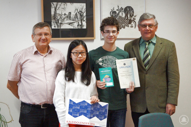 Als Anerkennung erhielt er eine Urkunde sowie als Geschenk ein kleines Buch mathematischen Inhalts, verbunden mit der Teilnahmeberechtigung an der zweiten Runde des Wettbewerbs. Respekt verdient auch das Abschneiden von Linda Vuong, 10b. Sie verfehlte nur ganz knapp einen dritten Preis. Als Anerkennung erhielt auch sie ein kleines Geschenk in Form eines KALEIDOLENDERs des Mathematikums in Gießen. Das LLG gratuliert den beiden Schülern herzlich zu ihren Erfolgen.