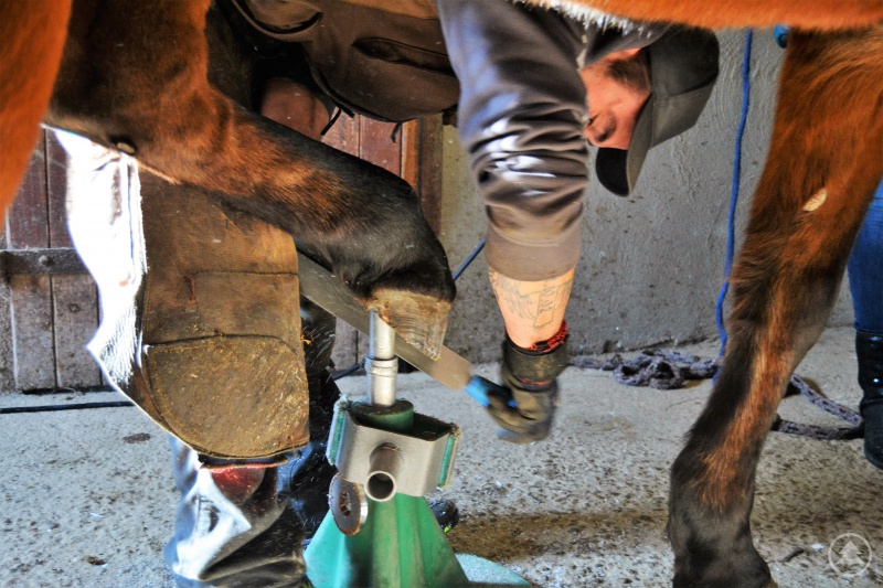 Traditionell beschäftigt sich der Hufschmied mit dem Beschlag der Hufe mit Eisen. Bevor die Eisen aufgesetzt werden, wird der Huf durch Raspeln und Schneiden vorbereitet. Präzision ist dabei Pflicht. Vier bis acht mm wachsen die Hufe im Monat, je nach Jahreszeit. Dazu kommen das Kürzen und Korrigieren bei Barhufgängern.