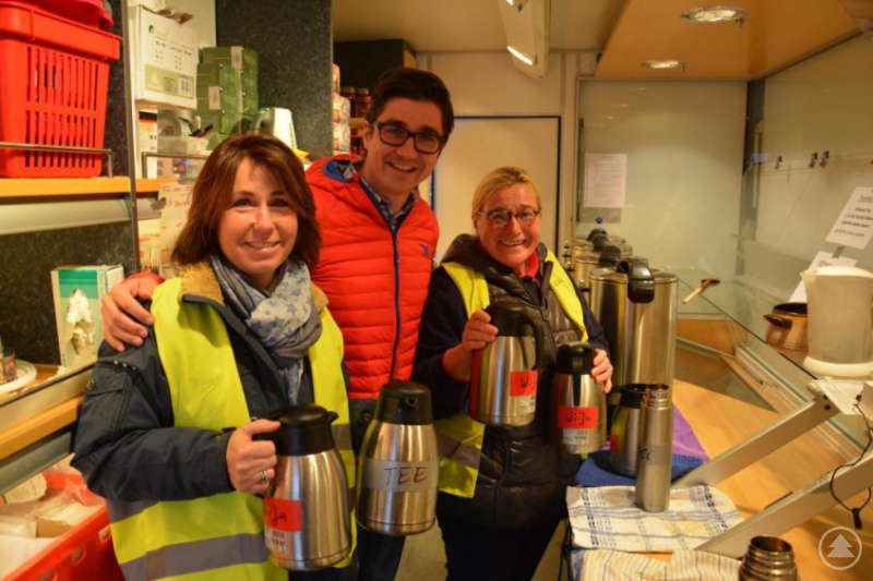 Auch in den eigenen Reihen war die Hilfsbereitschaft groß: Mit den Geldspenden konnte Marion Leebmann in die Ausstattung der Flüchtlingshilfe investieren – beispielsweise in einen der großen Kocher und 15 der Kannen, mit denen Flüchtlingshelferin Eva Klöffel arbeitet. Täglich von sechs Uhr morgens bis nach Mitternacht wurden im Passauer Bahnhof Flüchtlinge und die diensthabenden Polizeibeamten mit Essen, Kaffee und Tee versorgt.