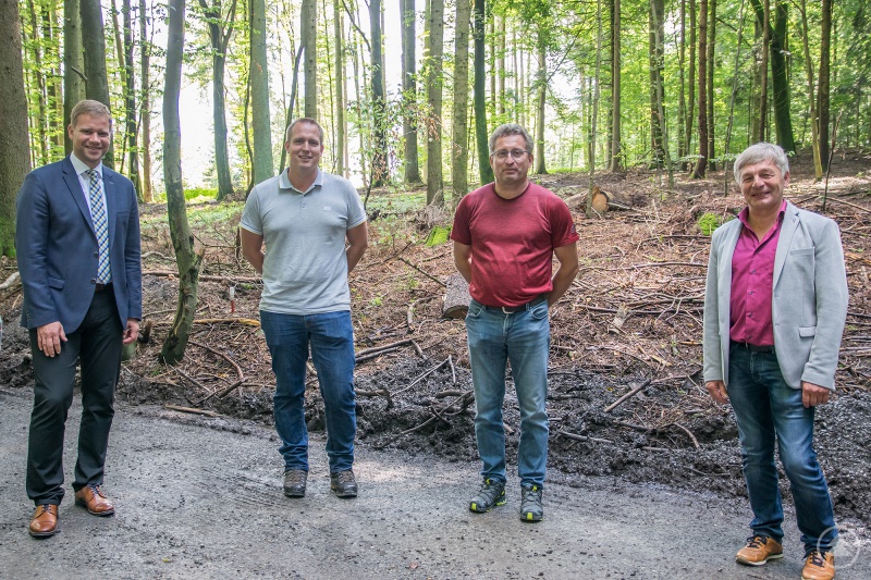 Bürgermeister Leo Meier (r.) und die Vorsitzenden von ProRöhrnbach, Michael Ritzinger (2.v.l.) und Andreas Ilg (2.v.r.) gaben Bezirkstagspräsident Dr. Olaf Heinrich Einblick in die Planungen zum Waldspielplatz.