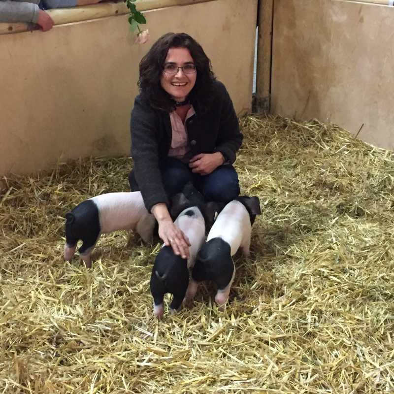 Monika Häuslmeier von der Tourist-Information Viechtach bei einem Rundgang auf der Grünen Woche in der Tierhalle. (Foto: Privat)