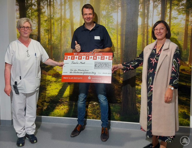 Eine großartige Summe spendeten die Mitarbeiter der Kliniken Am Goldenen Steig der betroffenen Familie des Kranunglücks in Waldhäuser.