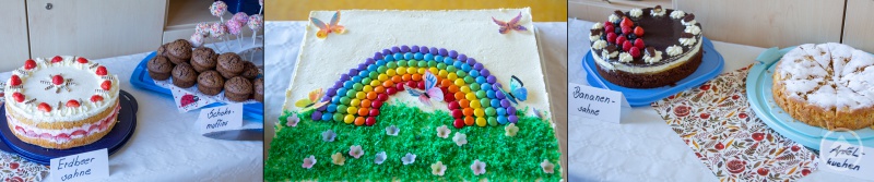 Natürlich dürfen bei einer richtigen Feier Kaffee und Kuchen nicht fehlen. Die Eltern der einzelnen Kindergartengruppen ließen sich da nicht lange bitten und zauberten ein Buffet mit Kuchen und anderen Leckereien, an denen sich die Gäste bedienen und den Sonntag Nachmittag ausklingen lassen konnten.
