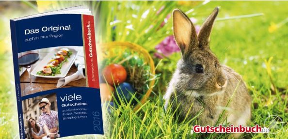 Osterhasen schenken gerne das, was sie selbst am liebsten mögen: Entspannung, Wellness, gutes Essen – einfach mal runterkommen nach den anstrengenden Ostertagen. Die „Schlemmerreise mit Gutscheinbuch.de“ darf deshalb im Osternest nicht fehlen. Hochwertige 2für1- und Wert-Gutscheine für Gastronomie und Freizeit laden zu einer genussreichen Entdeckungsreise durch die Region ein. Erhältlich in rund 150 Regionalausgaben!