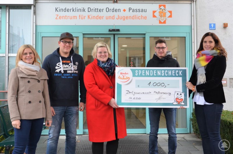 Die Dorfgemeinschaft Meßnerschlag hat in den letzten Jahren durch den Verkauf von Getränken und Lebkuchen immer wieder Gelder eingenommen, die sie für den guten Zweck aufgewendet hat – „zuletzt sind viele Veranstaltungen corona-bedingt leider abgesagt worden, unsere früheren Einnahmen wollen wir dennoch weitergeben“, begründet Franz Gottinger die Spende über 1.000 Euro an die Stiftung Kinderlächeln. „Wir wollen aus unserer Gemeinschaft heraus etwas zurückgeben – gerade in dieser schweren Zeit. Und hier in der Kinderklinik ist das Geld sicher gut aufgehoben“, betont auch Christina Killersreiter. Gemeinsam haben die beiden mit Lisa Gottinger und Viktor Resch, stellvertretend für die gesamte Dorfgemeinschaft Meßnerschlag, ihre Spende an die Stiftung Kinderlächeln übergeben – noch kurz vor Weihnachten, auch um an diejenigen zu denken, die vielleicht über Weihnachten in der Kinderklinik bleiben müssen.