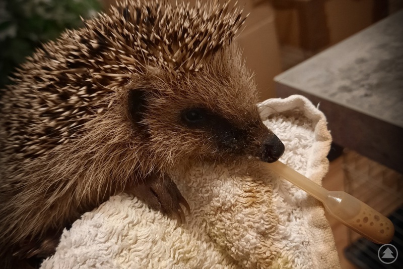 Im Garten fand sie dann ein Igelbaby. Sie brachte es zur Igelhilfe, da sie selbst wenig Ahnung von Igeln hatte. Leider war in der Igelhilfe momentan sehr wenig Platz und sie baten Evelyn, sich daheim um das Kleine zu kümmern.