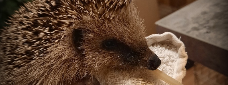Im Garten fand sie dann ein Igelbaby. Sie brachte es zur Igelhilfe, da sie selbst wenig Ahnung von Igeln hatte. Leider war in der Igelhilfe momentan sehr wenig Platz und sie baten Evelyn, sich daheim um das Kleine zu kümmern.