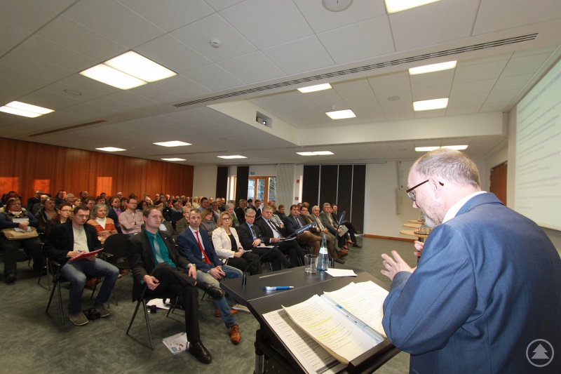 Wolfgang Maier von der Regierung von Niederbayern bat die Unternehmer, sich frühzeitig mit der Betriebsübergabe auseinanderzusetzen. Das Interesse war groß, gut 100 Zuhörer kamen auf den Campus.
