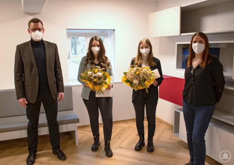 Laura Altmann bleibt dem Bezirksklinikum Mainkofen, einem Regiebetrieb des Bezirks Niederbayern, erhalten und wird mit ihrer Kompetenz zukünftig das Team der Personalabteilung verstärken. Marie-Sophie Kiefl wechselt in die Sozialverwaltung nach Bischofmais und bleibt somit zwar nicht dem Bezirksklinikum Mainkofen, aber doch dem Bezirk Niederbayern treu.