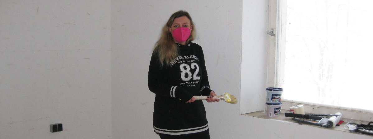 Mitarbeiterin Carina Philipp ist fleißig beim Streichen, damit alles hell und freundlich wird.