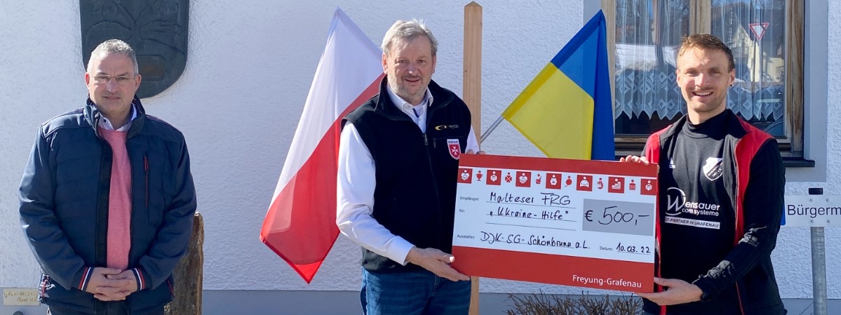 Die WSV DJK Rastbüchl, das Team von Sport Schuster und die Hausarztpraxis Mauth spenden damit insgesamt 150,- €. Anstatt der geplanten Pokalspende für die Sieger legt auch Erster Bürgermeister der Gemeinde Hohenau Josef Gais 100,- € als Spende drauf. Das Team des FRG VIRTUAL RUN und damit die DJK SG Schönbrunn a. Lusen verdoppelt diese Spende auf insgesamt 500,- € zu Gunsten der Ukraine-Hilfe des Malteser Hilfsdienst Passau.