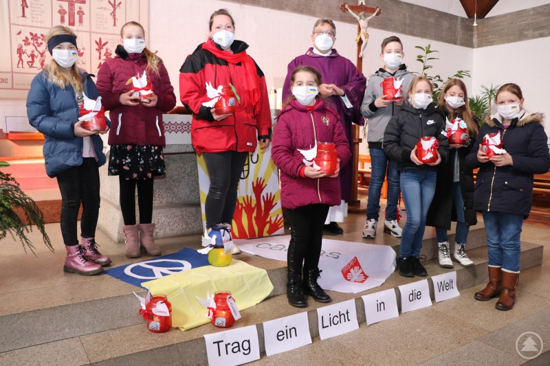 Am Caritassonntag, 13. März, rief Caritasvorstand Diakon Konrad Niederländer beim Gottesdienst in Wegscheid dazu auf, sich den Problemen und Nöten der Welt zu stellen. Christen seien den Menschen in der Ukraine und auf der Flucht verbunden. In vielen Orten organisierten Helferkreise und kirchliche Gruppierungen mit der Caritas Hilfe. Sie gehen aber auch hierzulande an die Ränder der Gesellschaft und der menschlichen Existenz. „Es zeigt sich, wie gut die Caritas verwurzelt ist und christliche Nächstenliebe ein Gesicht bekommt durch die beruflichen und ehrenamtlichen Mitarbeitenden unserer Caritas“. Allen Spender/-innen und Sammler/-innen dankte Diakon Niederländer. Sie lassen anderen Menschen den „österlichen Blick über alle Not und alle Sorgen hinweg in den Himmel erspüren und stärken Glaube und Hoffnung“. Zum Auftakt der Sammlungswoche trugen Jugendliche der Pfarrcaritas in Wegscheid mit der Vorsitzenden Marietta Huber für den Frieden in der Ukraine und die Hilfen der Caritas ein „Kerzen-Licht in die Welt“.