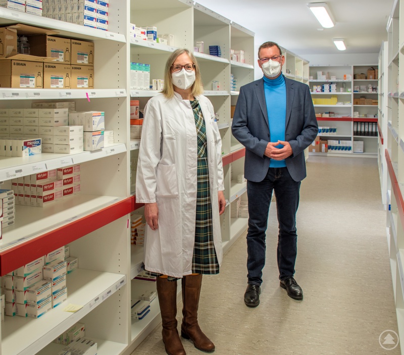 Krankenhausdirektor Uwe Böttcher und die neue Chefapothekerin Dorit Engelke in den Räumlichkeiten der Klinikapotheke des Bezirksklinikums Mainkofen.
