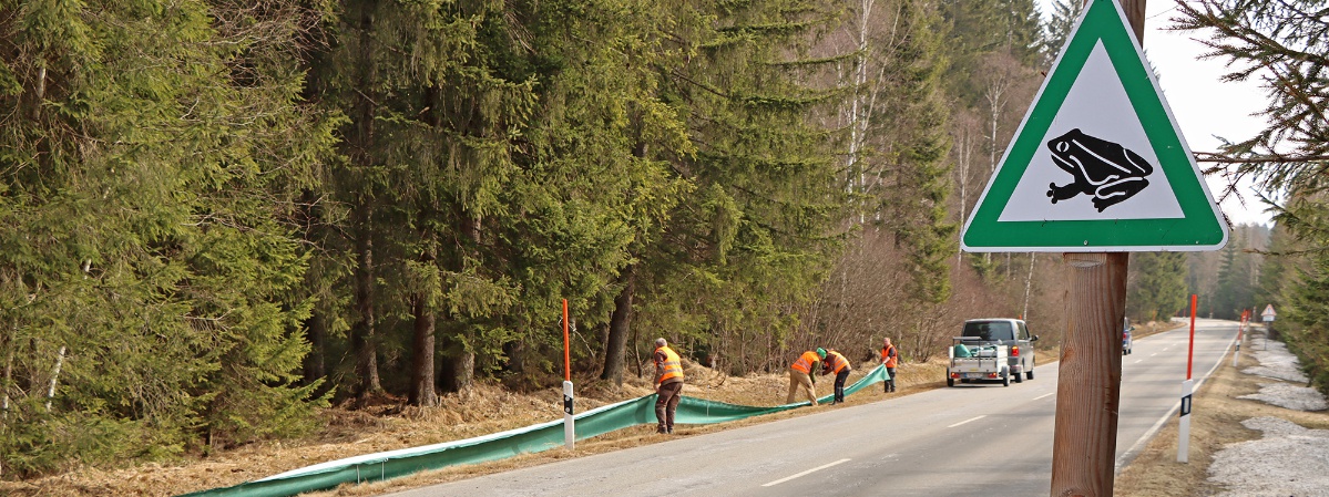 Auf insgesamt vier Kilometern Länge werden aktuell entlang der Nationalparkstraße Amphibienschutzzäune aufgestellt.