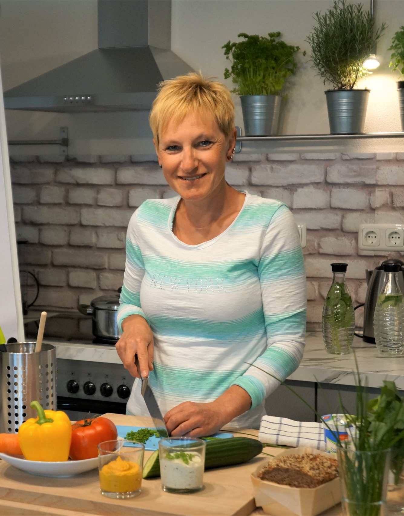 Die Diätassistentin und BGM-Beauftragten der Kliniken Am Goldenen Steig gGmbH, Frau Daniela Helfensteller kochte in der klinikeigenen Lehrküche mit den Teilnehmern.
