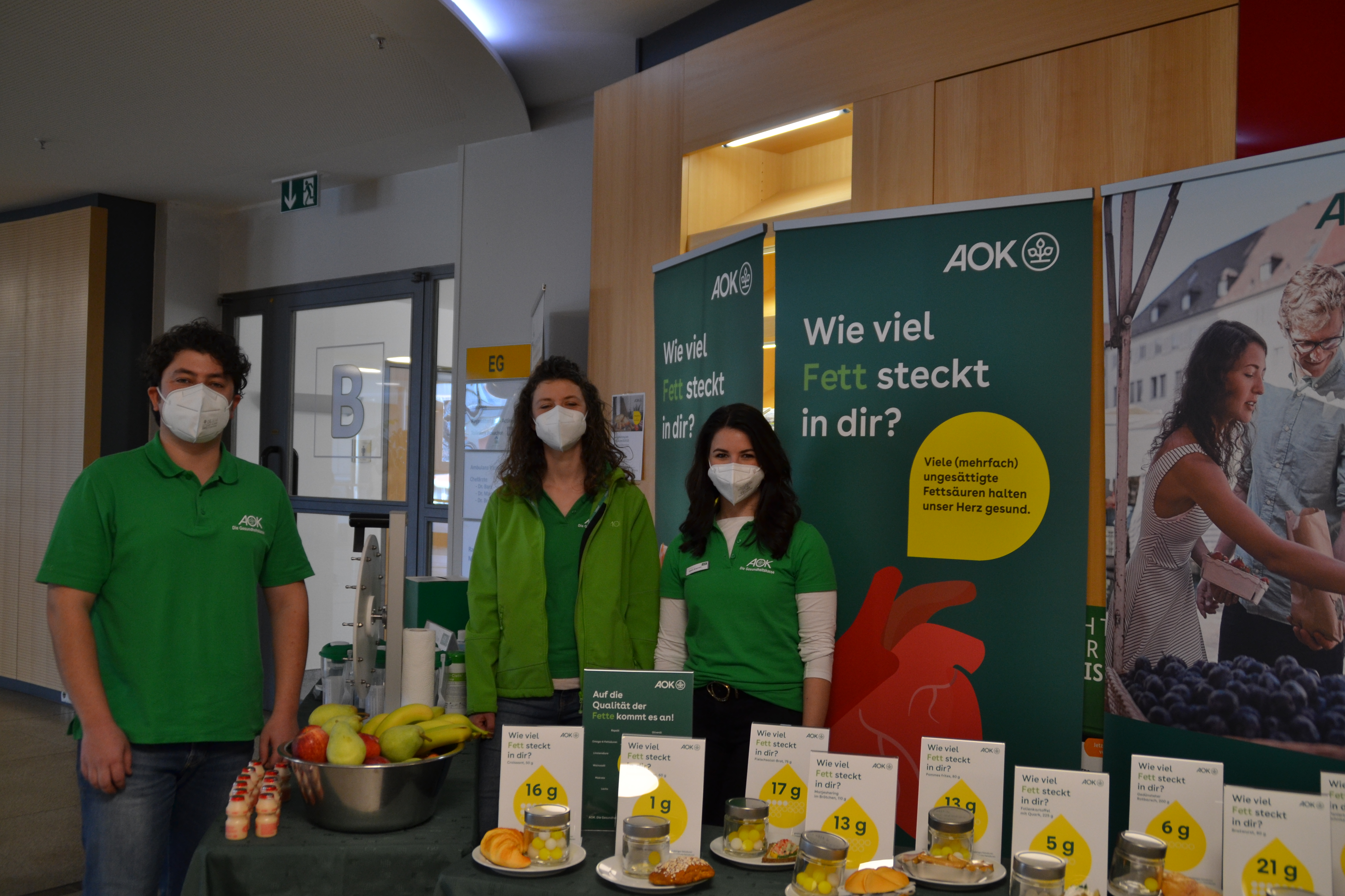 Das Team der AOK mit Thomas Zeintl (AOK-Firmenbetreuer), Eva Lepsik, (Ernährungsberaterin) und Sophia Bergbauer (AOK-Mitarbeiterin)