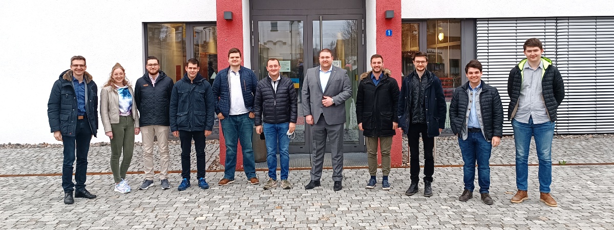 Informieren sich über die Betätigungsfelder des TAZ Spiegelau: (v. links n. rechts) Bürgermeister Karlheinz Roth, Anna Trauner, Fabian Clasen, Sebastian Schrank, Kreisgeschäftsführer Martin Höppler, Ludwig König, Kreisvorsitzender Christoph Weishäupl, Stephan Brunner, Sebastian Graup, Julian Vater und Michael Scherzer.