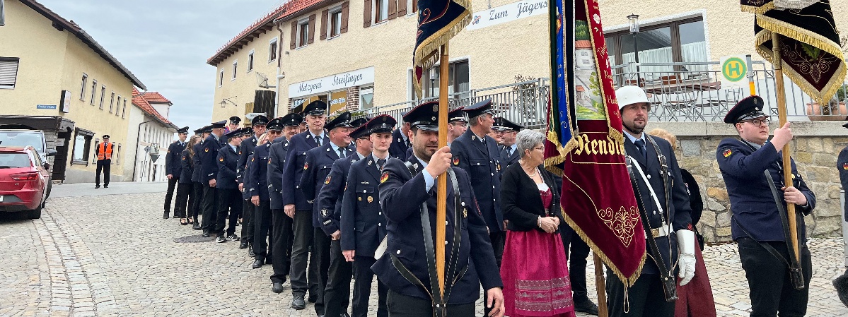 Die Aufstellung der Wehren fand gegen 09:45 Uhr statt. Anschließend zogen sie zur Kirche, in der sie mit Pfarrer Christopher Fuchs den Gottesdienst feierten.