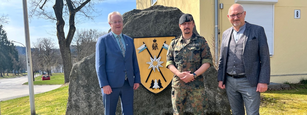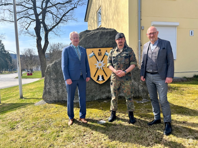 Das Aufklärungsbataillon 8 der Bundeswehr ist in Freyung stationiert. Die Abgeordneten Manfred Eibl und Bernhard Pohl (FREIE WÄHLER) besuchten die Kaserne „Am Goldenen Steig“, um mit den Verantwortlichen vor Ort über die Möglichkeiten und Potenziale des Standorts zu sprechen. Bernhard Pohl ist Sprecher für Fragen der Bundeswehr der FW-Fraktion und Vorsitzender des Bayerischen Soldatenbundes im Bezirk Schwaben. Der Kommandeur des Bataillons, Oberstleutnant Darius Niemm, informierte die Abgeordneten ausführlich über die gegenwärtige Situation.