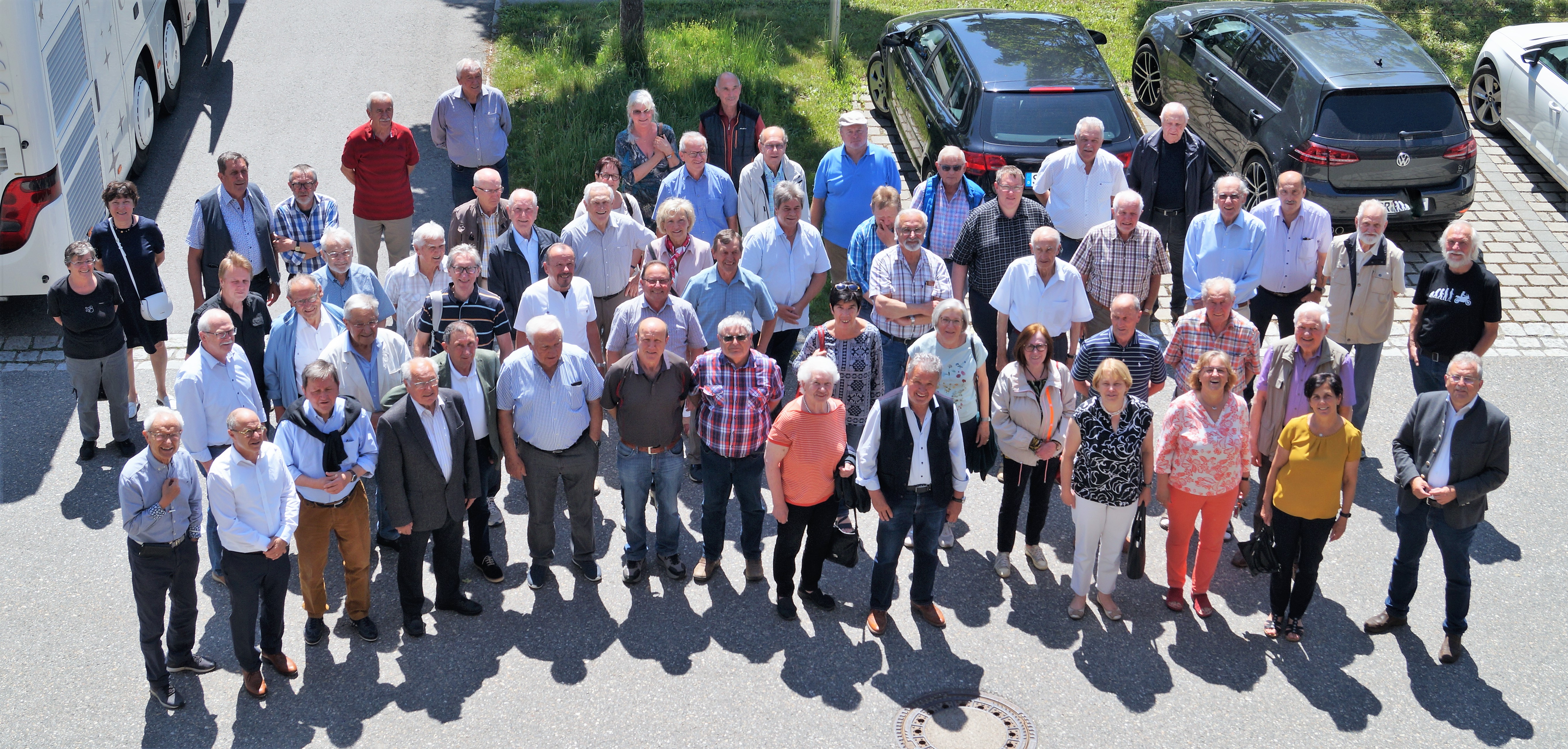 Die Teilnehmerinnen und Teilnehmer am Ehemaligen-Treffen im Hafen Straubing-Sand.