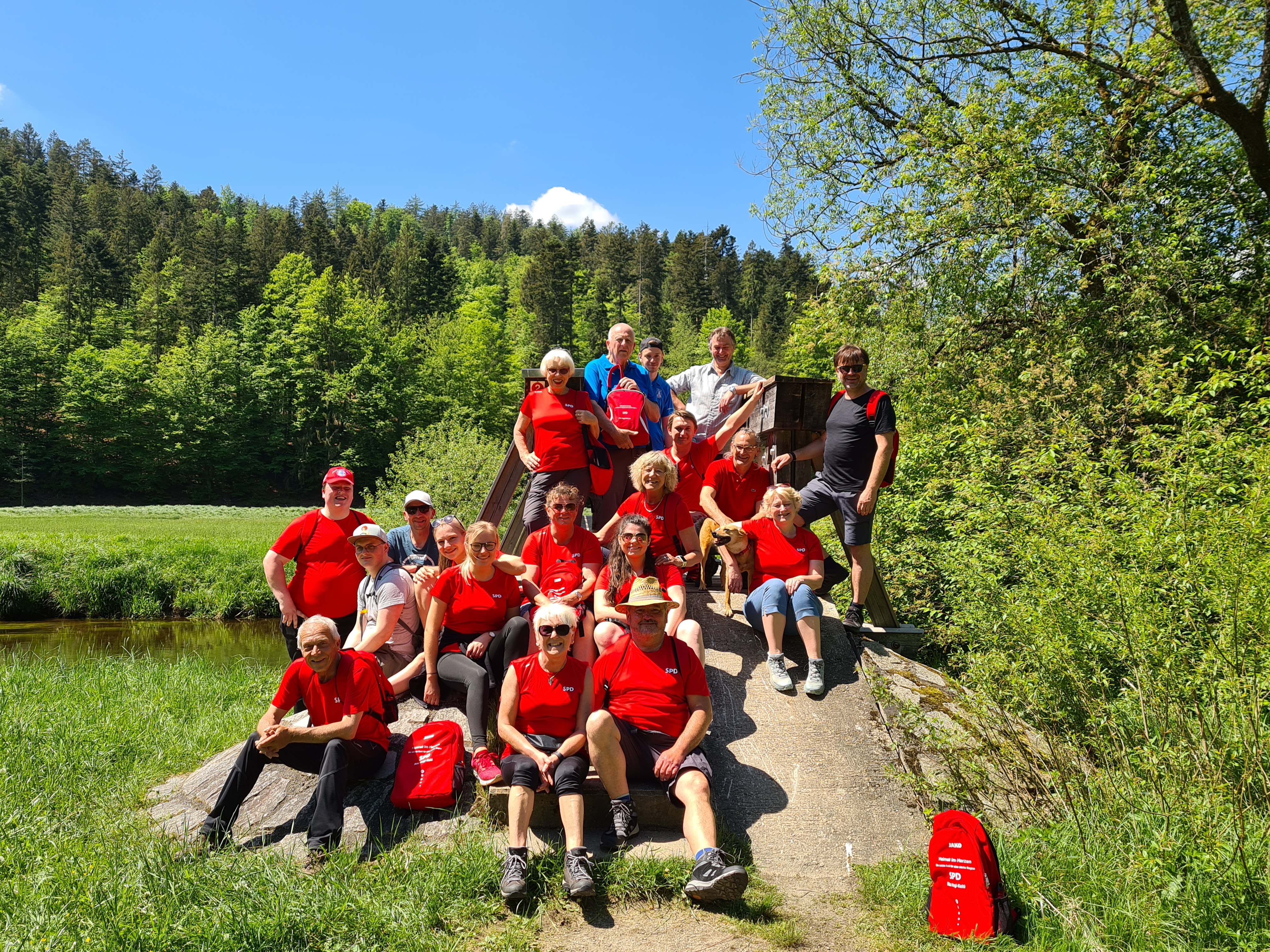 Haus i. Wald, 25.05.2022 - Bei strahlendem Sonnenschein und bestem Wanderwetter waren am vergangenen Sonntag wieder viele begeisterten Wanderer an der Ilz bei Furth unterwegs, von weitem erkennbar durch ihre auffällig rote Ausstattung. Die niederbayerische Bundestagsabgeordnete Rita Hagl-Kehl (SPD) hatte zum Start ihrer diesjährigen „roten Rucksack-Touren“ eingeladen, bei denen sie zusammen mit den SPD-Ortsvereinen Wandertouren durch die heimatliche Landschaft veranstaltet. Seit mittlerweile sieben Jahren bietet Hagl-Kehl dieses Veranstaltungsformat an, bei welchen sich für die Teilnehmerinnen und Teilnehmer in lockerer Atmosphäre viele Gesprächsmöglichkeiten mit der Bundestagsabgeordneten ergeben. „Wenn sich in den vergangenen Jahren eines gezeigt hat, dann dass beim gemeinsamen Wandern immer gute Gespräche entstehen“, so die ehemalige Lehrerin.