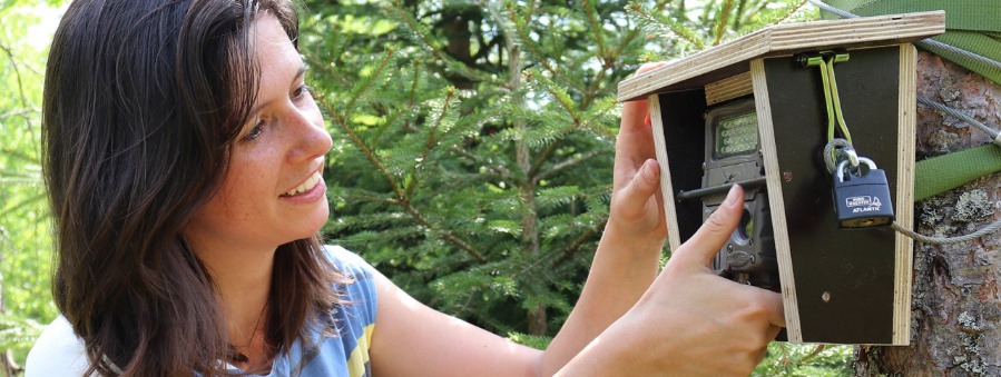 Nicht nur die Aufnahme von Verbiss-Schäden, sondern auch die Überprüfung des Geländes mittels Wildkameras gehörte zur Forschungsarbeit von Suzanne van Beeck Calkoen.