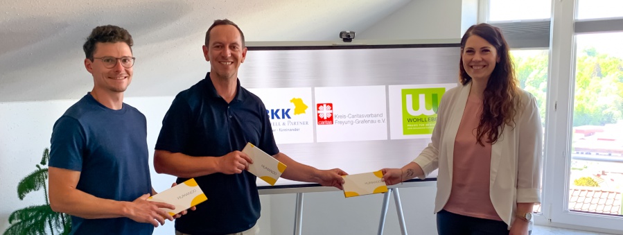 Die notwendigen Lizenzen werden von der BKK Faber-Castell (Regen) zur Verfügung gestellt (siehe Foto: Robert Weindl, Stefan Schlee und Maria Wotschal). Aber: „Nur wer überzeugt von den Vorteilen eines BGM ist“, meinte Benedikt Salehi (Gesundheitscoach), „kann von seinen Mitarbeitern entsprechende Achtsamkeit erwarten!“. Gleich umgesetzt hatte das die Caritas-Vorständin Alexandra Aulinger-Lorenz, indem sie sich die erste Lizenz sicherte.