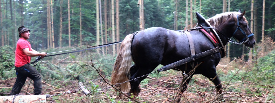 Im Rahmen des Borkenkäfermanagements in der Randzone des Nationalparks Bayerischer Wald kamen vor kurzem erneut echte Pferdestärken zum Einsatz. Der fünf Jahre alte Deckhengst "Bubi" von Siegfried Stangl half in einem Waldstück bei Kreuzstraßl große Fichtenstämme aus dem Wald zu ziehen. Eine für die Natur besonders schonende Form des Holzrückens.