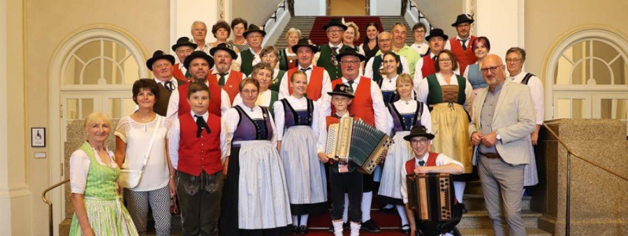 Nach einem typisch bayerischen Mittagessen in der Landtags-Gaststätte zusammen mit Manfred Eibl bedankte sich die Gruppe mit ein paar Tänzen und Musikstücken bei ihm für die Einladung. Diesen Klängen konnte auch der Fraktionsvorsitzende Florian Streibl nicht widerstehen und mischte sich unter die Zuschauer. Nach anhaltendem Applaus und einem herzlichen Dankeschön für die Einlagen, machte sich die Gruppe wieder auf den Weg.