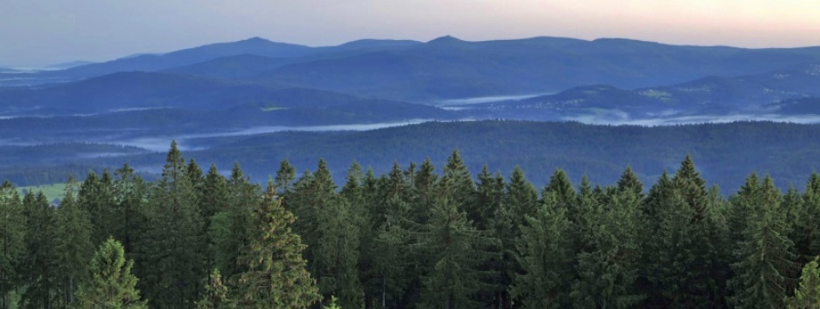 Während andernorts zurzeit große Hitze und Trockenheit herrschen, findet man in den Höhenlagen des Bayerischen Waldes eher gemäßigte Bedingungen vor. Auch der Wasserhaushalt entspricht hier durch Rückhaltemöglichkeiten der Natur noch ganz "normalen" Bedingungen! Auf dem Foto sieht man Rachel und Lusen in den frühen Morgenstunden eines schönen Julitags, kurz vor Sonnenaufgang vom Haidelgipfel aus.