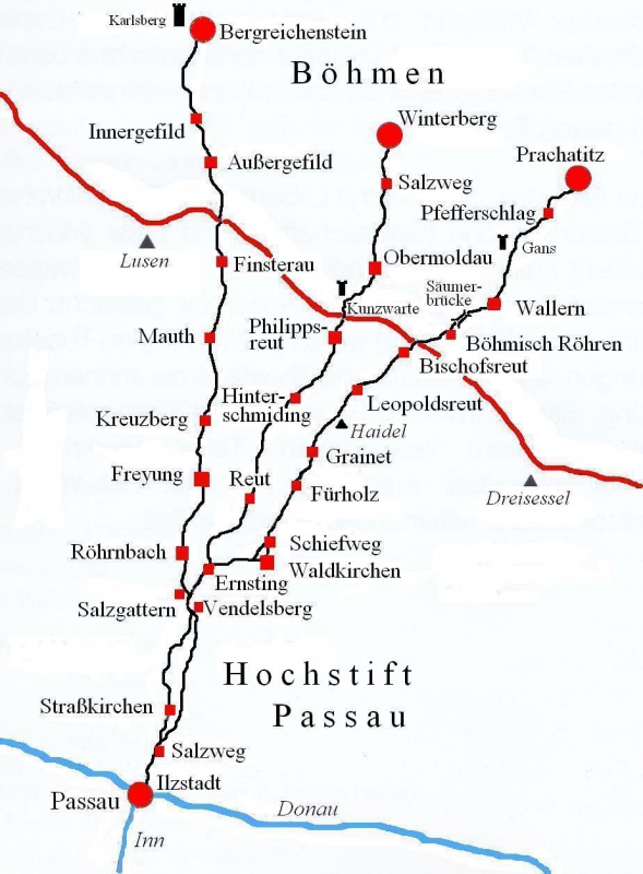 Beim heutigen Schiefweg kann man mit relativ großer Sicherheit sagen, dass der Ortsname von „Weg zu den Schiffen“ herzuleiten ist. Lag der im Jahr 1200 zum ersten Mal schriftlich erwähnte Ort doch an einem wichtigen Saumpfad, dem unteren Goldenen Steig. Schiefweg war sicher schon vor 1200 ein wichtiger Ort und gewann als Raststation für reisende Händler und deren Tiere stetig an Bedeutung.