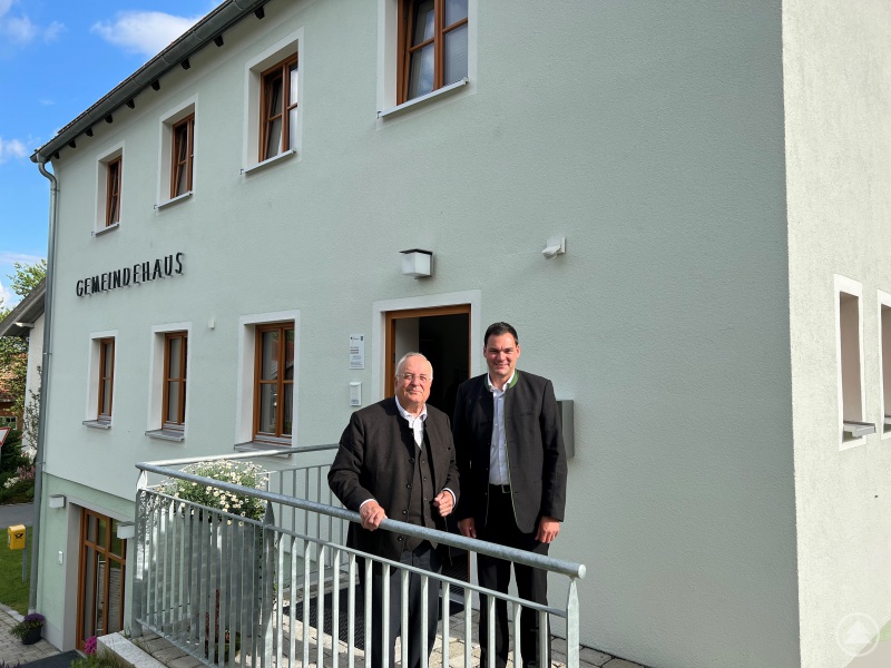 Stolz präsentierte Bürgermeister Peter Schmid (links) Landrat Sebastian Gruber das Gemeindehaus, das unter anderem als Treffpunkt für die Vereine und als Veranstaltungsort genutzt wird.