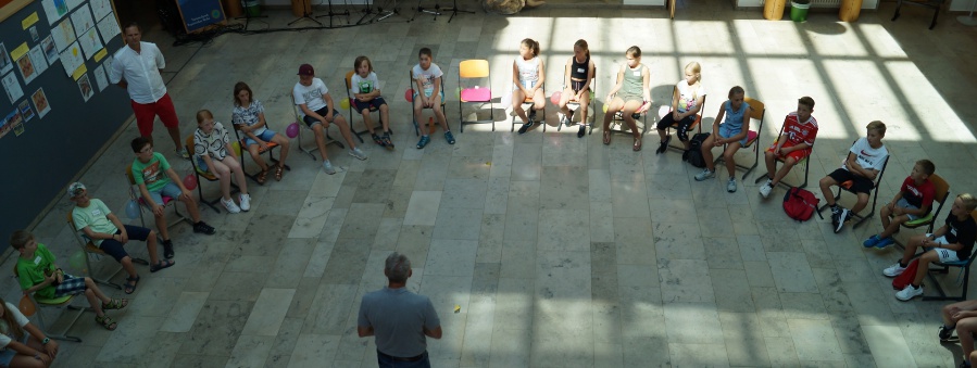 Der Nachmittag wurde sportlich mit einem Tanz und einem lustigen Spiel, in dem für Berührungsängste kein, für Belustigung dafür aber umso mehr Platz war, beendet. Mit einem süßen "Giveaway", den besten Wünschen für erholsame Ferien und der Vorfreude auf das Wiedersehen im September am LLG wurden die Grundschüler verabschiedet.