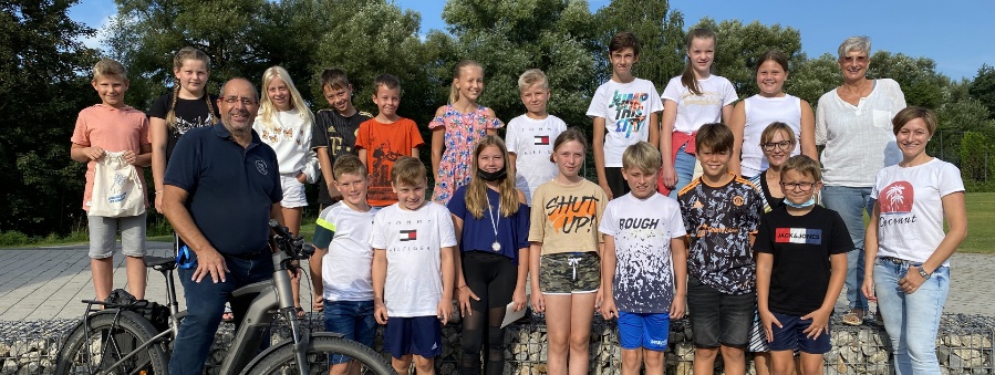 Die Schülerinnen und Schüler der Grund- und Mittelschule in Röhrnbach freuen sich zusammen mit ihren Lehrkräften und der Schulleitung Gibis über ihre Bestleistung beim diesjährigen Stadtradeln.