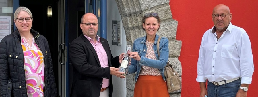 Caritasvorstand Mag.a (FH) Andrea Anderlik wünscht dem künftigen Leiter der Caritas Senioren- und Pflegeeinrichtung St. Josef in Hauzenberg, Franz Josef Sicklinger, zum Start alles Gute. Mit dabei die Leiterin der Abteilung „Menschen mit Pflegebedarf, Heidi Brem, (li.) und der langjährige Leiter, Franz Hackl.
