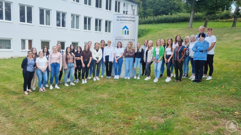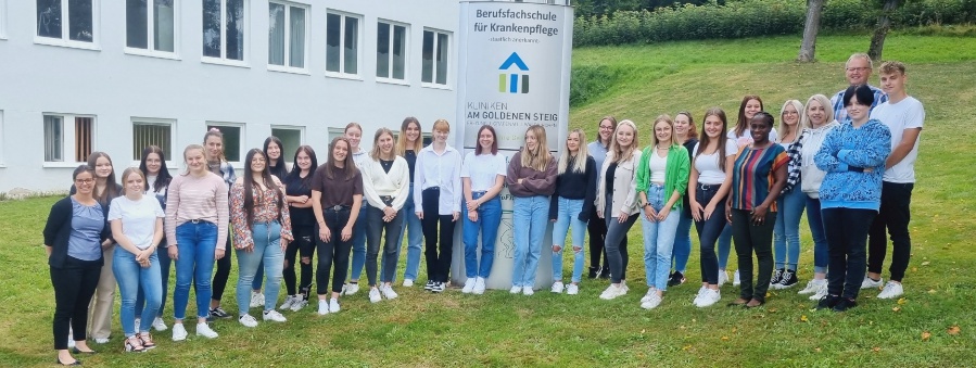 Mit ihrer Klassenleiterin Fr. Julia Geier starteten 27 Jugendliche am 01. September 2022 in die Ausbildung zur/zum Pflegefachfrau/-mann an den Kliniken Am Goldenen Steig gGmbH, die drei Bereiche der Kranken-, Kinderkranken- und Altenpflege zusammenfasst. Dies ermöglicht den Auszubildenden Einsätze in allen Bereichen der Pflege und somit ein weitgefächertes Angebot an Möglichkeiten nach der Ausbildung.