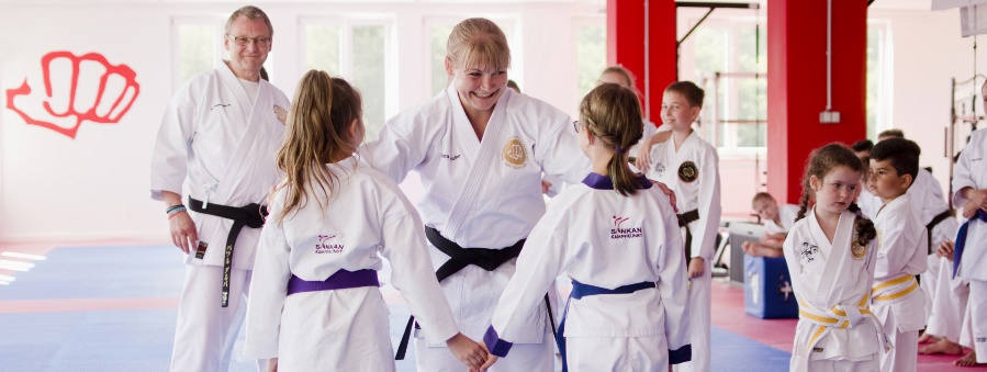 Erläutern von Sicherheitstipps in der Schülergruppe des Karate ClubsErläutern von Sicherheitstipps in der Schülergruppe des Karate Clubs