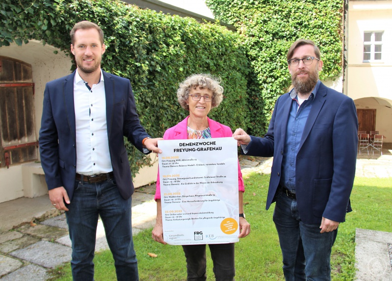 Die Ausrichter freuen sich auf zahlreiche Teilnehmende bei den Veranstaltungen der Demenzwoche (von links) René Kurtz (Geschäftsstellenleitung GesundheitsregionPlus Landkreis Freyung-Grafenau), Dr. Hanna Seidl (2. Vorsitzende der Katholischen Erwachsenenbildung Landkreis Freyung-Grafenau) sowie Christian Fiebig (Leitung Koordinationsbüro für Senioren Landkreis Freyung-Grafenau).