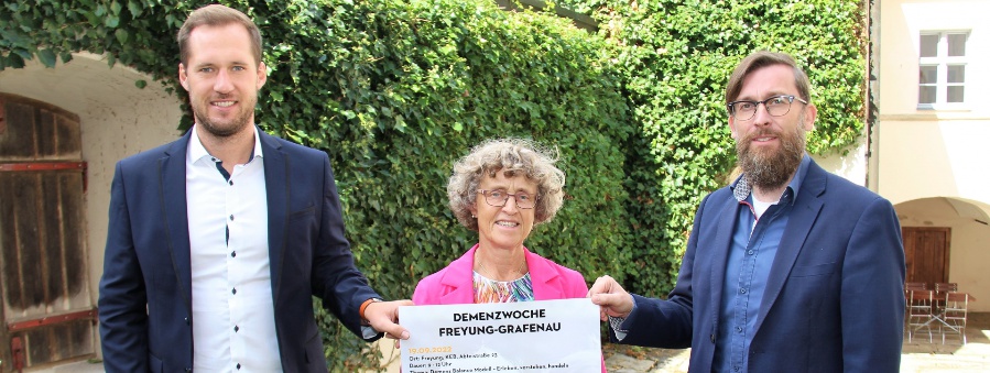 Die Ausrichter freuen sich auf zahlreiche Teilnehmende bei den Veranstaltungen der Demenzwoche (von links) René Kurtz (Geschäftsstellenleitung GesundheitsregionPlus Landkreis Freyung-Grafenau), Dr. Hanna Seidl (2. Vorsitzende der Katholischen Erwachsenenbildung Landkreis Freyung-Grafenau) sowie Christian Fiebig (Leitung Koordinationsbüro für Senioren Landkreis Freyung-Grafenau).