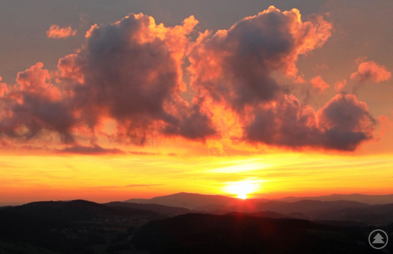 Nach einem niederschlagsfreien und warmen Herbstbeginn zog in der zweiten Septemberwoche ein Regengebiet über den Bayerwald. Während es am vergangenen Mittwoch noch 24,5 Grad gab, lag die höchste Tagestemperatur drei Tage später nur noch bei 10 Grad. Am kommenden Wochenende soll es nocheinmal um etwa 5 Grad kälter werden, auf den Berggipfeln kündigt sich bereits der erste Schneefall dieses Herbstes an. In den den letzten Tagen schob sich dann ein ein kurzes Zwischenhoch ein. Das Foto zeigt eine Licht-Wolkenstimmung vom Montagabend (12.09.) um 19.30 Uhr. Die interessante Wolkenformation über der Freyunger Region wurde von Obergrainet aus Richtung Brotjacklriegel beobachtet.