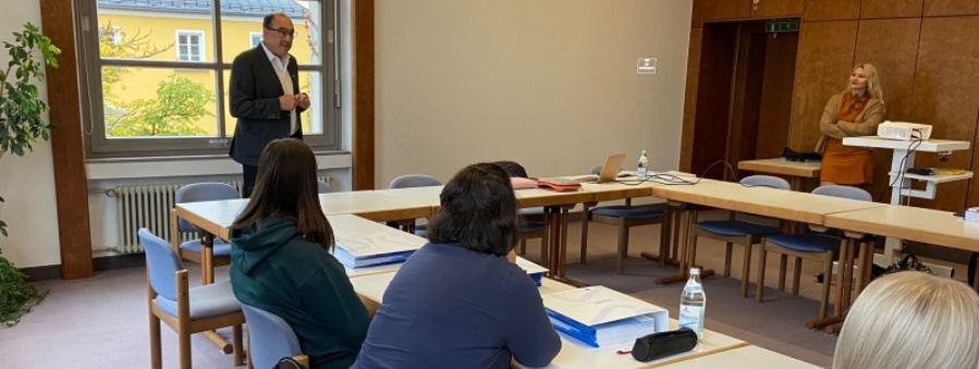 Stellv. Landrat Franz Brunner bei der offiziellen Begrüßung der Teilnehmerinnen in Freyung. Das Angebot richtet sich an alle ausgebildeten Medizinischen Fachangestellten, aber auch an Quereinsteiger und Wiederkehrer.