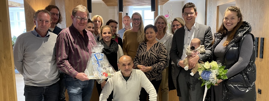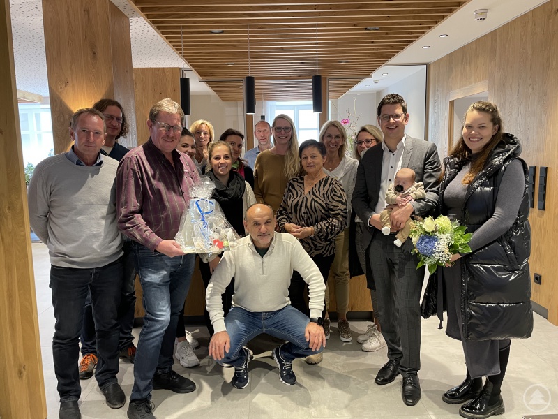 Kürzlich war klein-Leopold dann auch im Rahmen seiner „Weisad-Übergabe“ im Schönberger Rathaus „vorstellig“ und zeigte sich vor der Belegschaft natürlich von seiner Schokoladenseite. Mit vielen „Oooh“s und „meiiii“s wurde er vor allem von den weiblichen Bediensteten willkommen geheißen – ganz klar, die Eltern haben bei Leopold ganze Arbeit geleistet. Stellvertretender Vorsitzender der Verwaltungsgemeinschaft Schönberg Martin Geier, gratulierte den stolzen Eltern im Namen aller Mitarbeiterinnen und Mitarbeitern und stieß nochmals auf den Nachwuchs an. In der Hoffnung, dass Leopold jetzt öfter zu Besuch im Rathaus sein wird, durfte Frau Pichler ihn dann aber doch wieder mit nach Hause nehmen.
